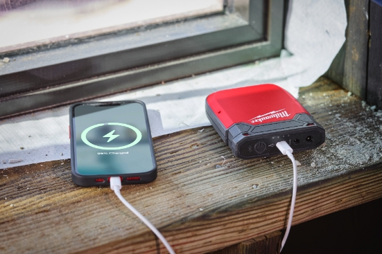 - Gleichzeitiger Betrieb von M12™ beheizbarer Kleidung und Laden eines Gerätes möglich.