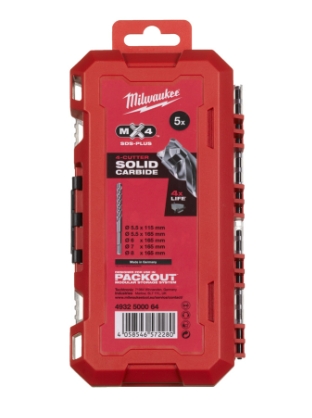 Produktinformationen "Milwaukee SDS-PLUS MX4™ Hammerbohrer, 5-teiliges Set #2 (Ø5,5 x115mm,Ø5,5/6/7/8x165mm)"