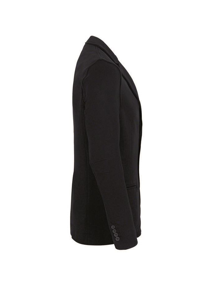 Modisch geschnittener 2-Knopf-Sweatblazer mit formgebenden Längsnähten für perfekte Passform, Paspeltaschen, Rückenteil mit verdecktem Schlitz, Ärmeln mit Passformabnähern auf Ellbogenhöhe, Teilungsnaht und geschlossenen Manschetten, 4-Loch-Knöpfen mit gelasertem HAKRO-Schriftzug - über Kreuz vernäht und doppelt verknotet für extrafesten Halt -, Teilfutter aus gestreiftem Gewebe im Rücken, nicht angerauter Innenseite (French-Terry) und Metallkettchen als Aufhänger an der Krageninnenseite. Hergestellt aus pflegeleichter Baumwolle-Polyester-Mischung für höchste Ansprüche. Gewebtes HAKRO-Necklabel aus hochwertigem Kettsatin mit weichen, ultraschallgeschnittenen Bandkanten für höchsten Tragekomfort.
