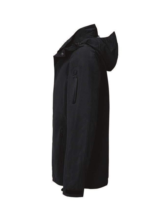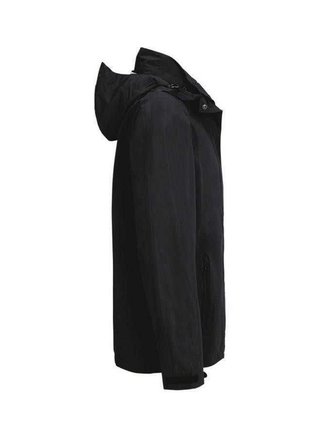 Atmungsaktive, wasser- und winddichte Kombijacke mit getapten Nähten, abnehmbarer und regulierbarer Kapuze mit Schild, verlängertem, abgerundetem Rückenteil, hochwertigem 2-Wege-Frontreißverschluss mit Kinnschutz und Windschutzpatte, wasserdichten Reißverschlüssen an den Taschen und Reißverschlussärmeltasche. Alle Reißverschlüsse von YKK®. Weitenverstellbarer Saumabschluss mit Tunnelkordelzug und Stoppern, weitenverstellbare Ärmelbündchen mit Klettband zum stufenlosen Regulieren. Hergestellt aus strapazierfähigem wasser- und winddichtem Obermaterial aus 2,5-Lagen-Laminat mit TRIACTIVE®PRO-Technologie für maximale und zuverlässige Wasserdichtigkeit. Gewebtes HAKRO-Necklabel aus hochwertigem Kettsatin mit weichen, ultraschallgeschnittenen Bandkanten für höchsten Tragekomfort und gewebtes HAKRO-Flaglabel an der linken Seitennaht.
