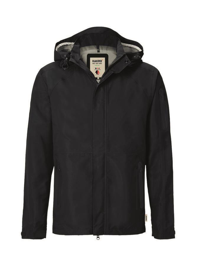 o Eigenschaften: wasserdicht (Wassersäule 5.000 mm), atmungsaktiv (Atmungsaktivität: 5.000 g/m2/24h), HAKRO-ZIP-IN-SYSTEM