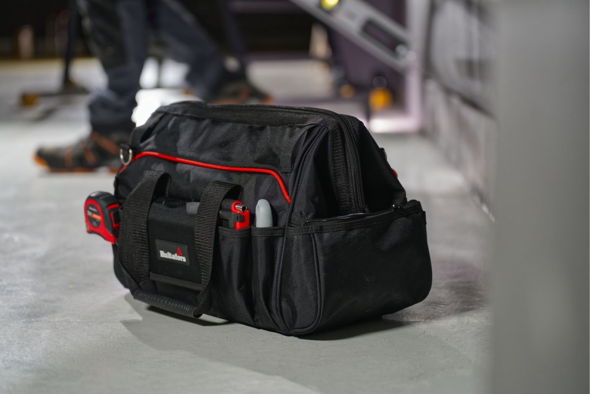 Dieser robuste Werkzeugträger lässt sich nicht nur weit öffnen, sondern bleibt dank seines Rahmens auch weit geöffnet stehen, sodass Sie bei der Arbeit einfach auf Ihr Werkzeug zugreifen können. Er bietet ein grosses Fach mit mehreren Werkzeughaltern und zwei Reissverschlusstaschen für kleinere Gegenstände und Bits. Zum Schutz Ihres Werkzeugs ist er leicht mit einem Reissverschluss verschliessbar. Die robusten Nylon-Reissverschlüsse haben grosse Metallschieber, die auch mit Handschuhen leicht zu greifen sind. Die Griffe sind aus Gummi gefertigt und liegen beim Tragen gut in der Hand. Der verstellbare Schulterriemen ermöglicht ergonomischen Tragekomfort und lässt sich dank starker Metallkarabiner leicht abnehmen. Die Tasche ist aus extrem strapazierfähigen ballistischen Polyester – 1680 Denier – gefertigt, was der Tasche maximale Verschleissfestigkeit und Langlebigkeit verleiht. Die robuste und strapazierfähige Ausführung machen diese Tasche zu einem treuen Begleiter.- Leichter Zugriff aufs Werkzeug dank weiter Öffnung, die auch geöffnet bleibt