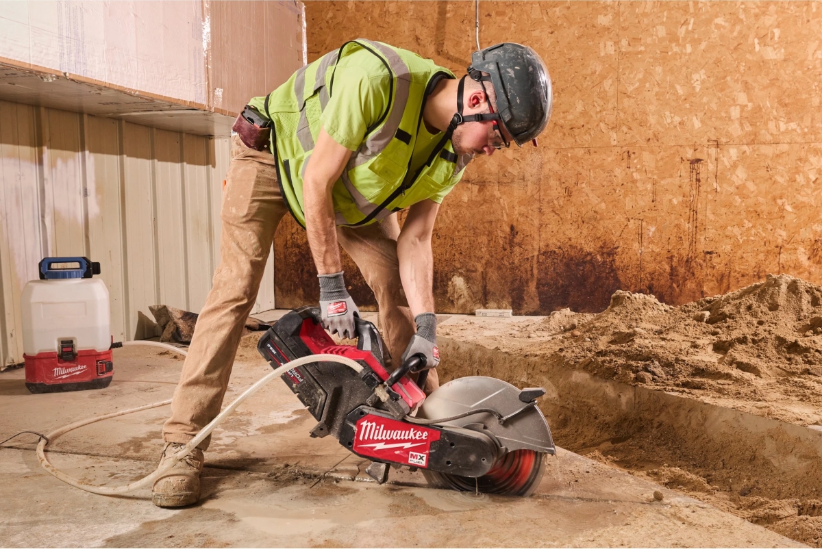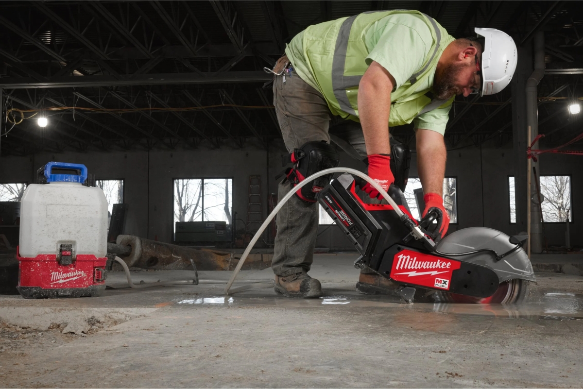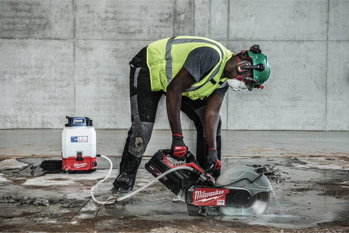 - Integrierte Wasserleitung für das Nassschneiden, die mit dem austauschbaren M18™ SWITCH TANK™ Sprühgerät und Wasserversorgungssystem kompatibel ist