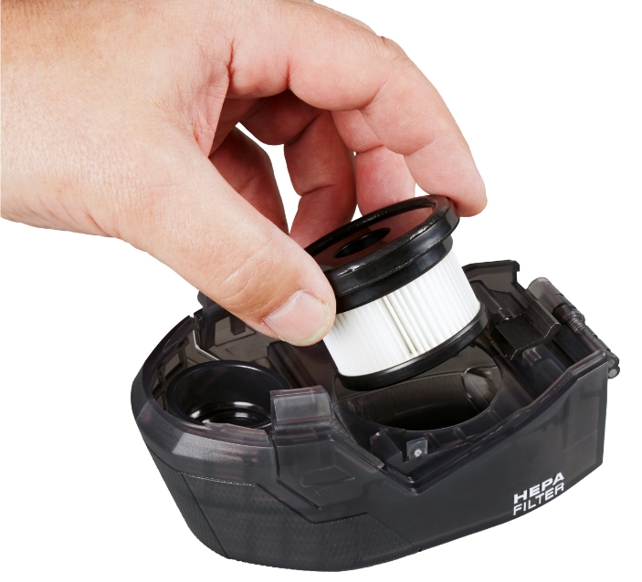 - Der hocheffiziente HEPA-Filter fängt 99,97 % der in der Luft befindlichen Partikel bis zu einer Grösse von 0,3 Mikron ab