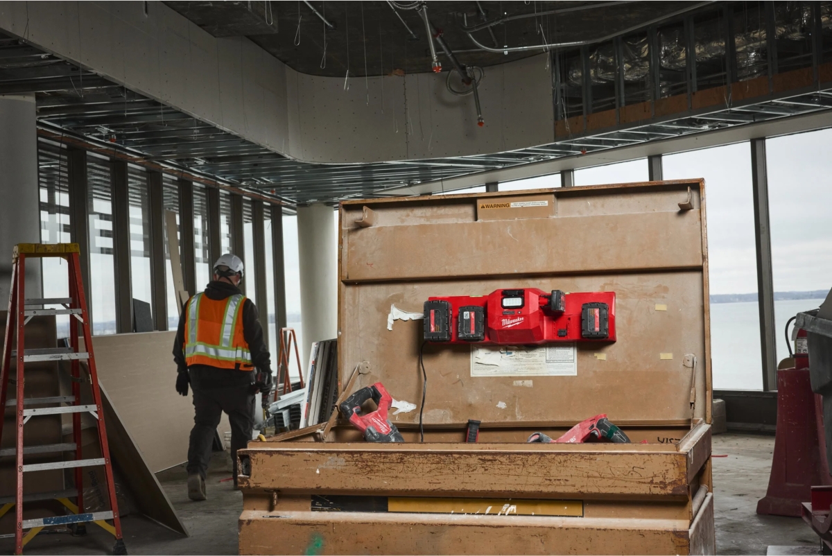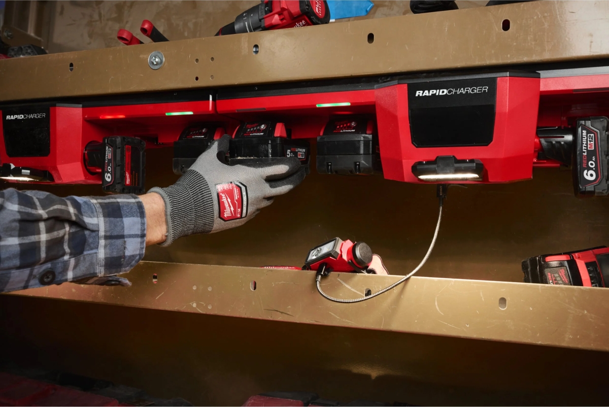 - Ladegerät mit zwei M18™-Schächten und zwei M18™- und M12™-Hybridschächten