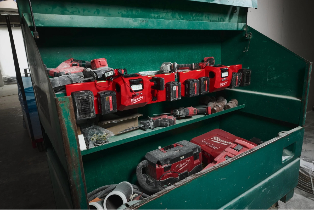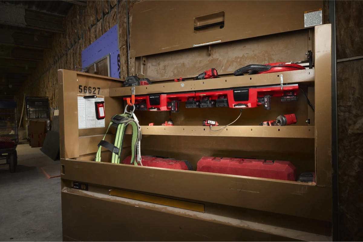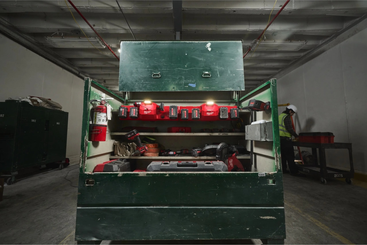 - Konzipiert für Anwender, die auf der Baustelle an Werkstattwagen oder anderen Stahllagerräumen arbeiten