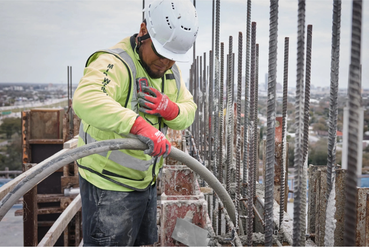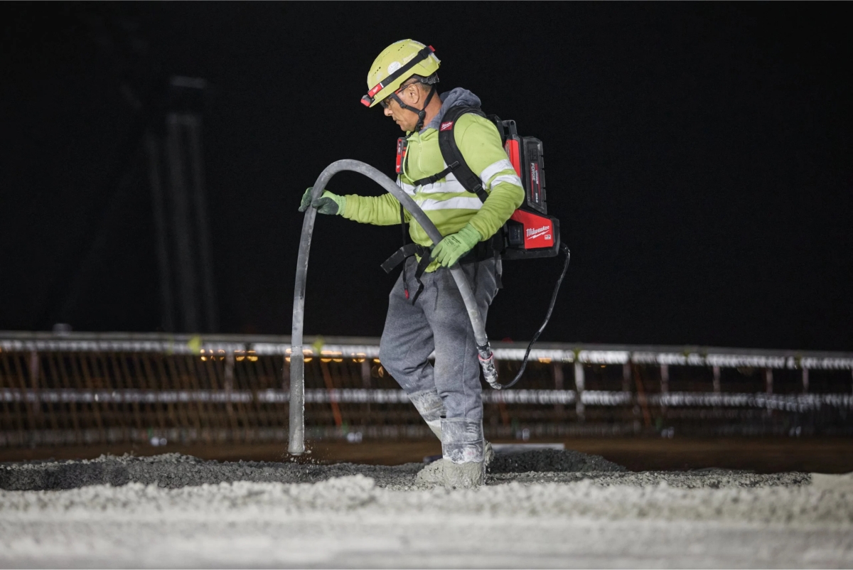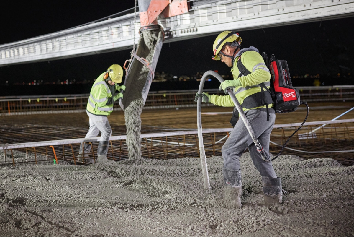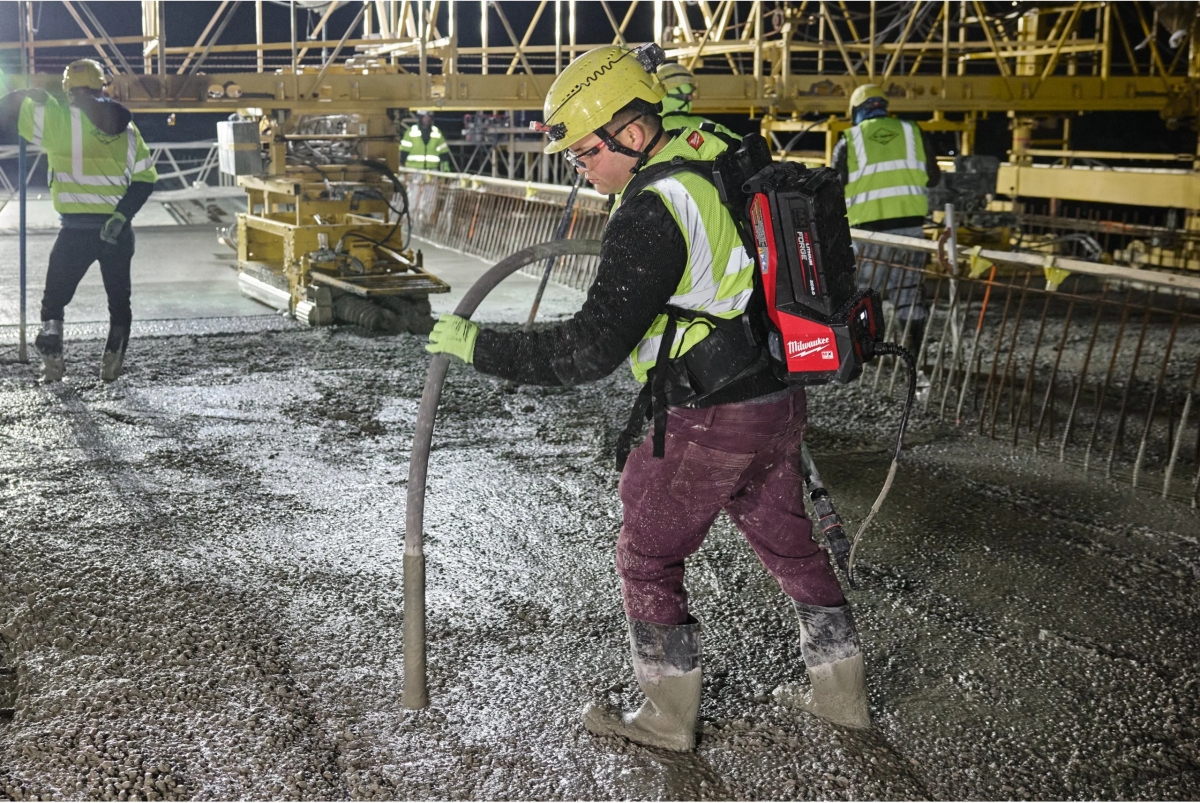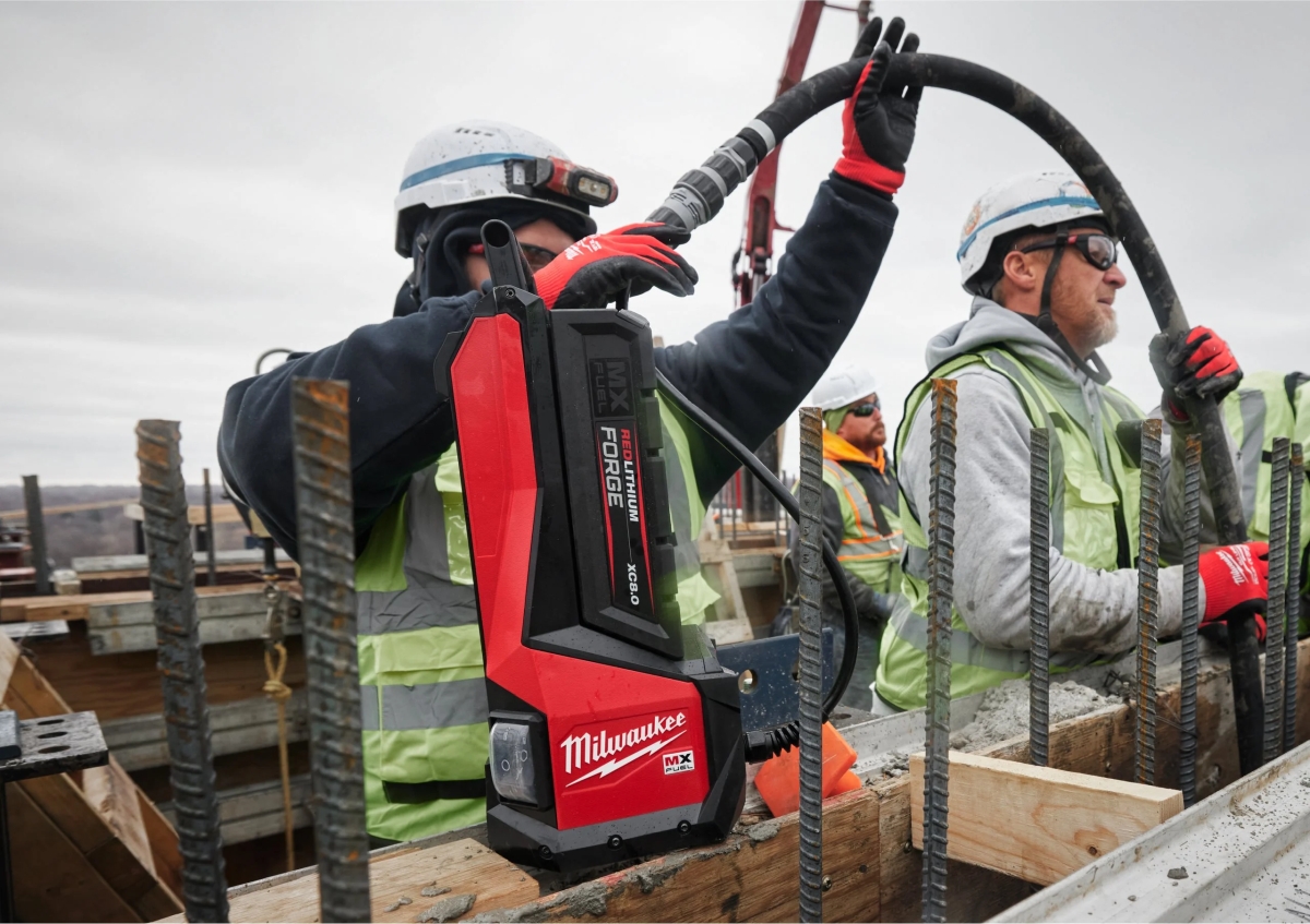 - Verdichtet bis zu 55 m³ Beton mit 1x MXF XC608 Akku
