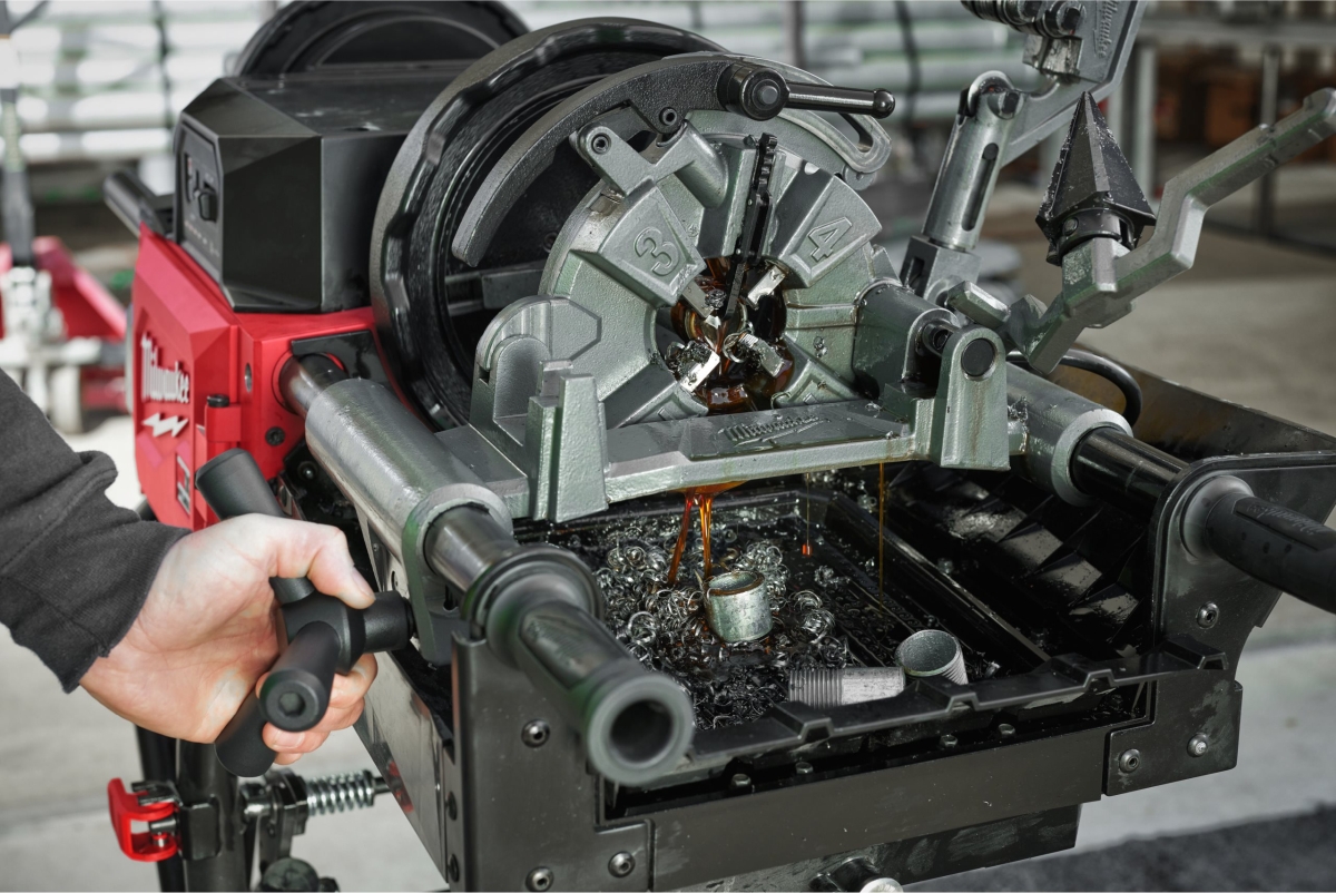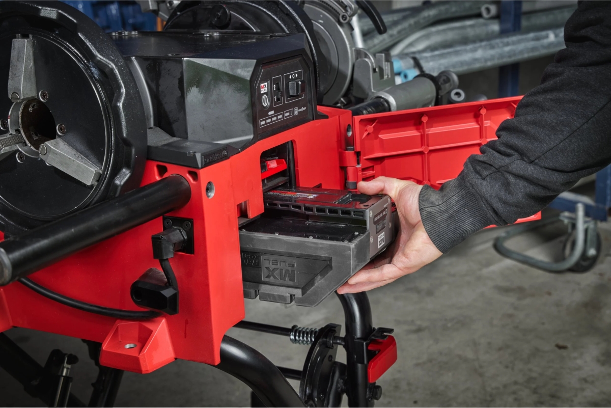 - Ganztägige Laufzeit mit bis zu 140 Zyklen (Schneiden+Entgraten+Gewindeschneiden) mit einem MX FUEL™ 6,0 Ah Akku