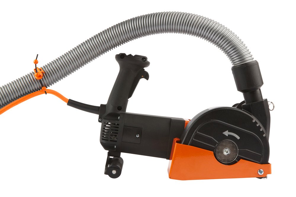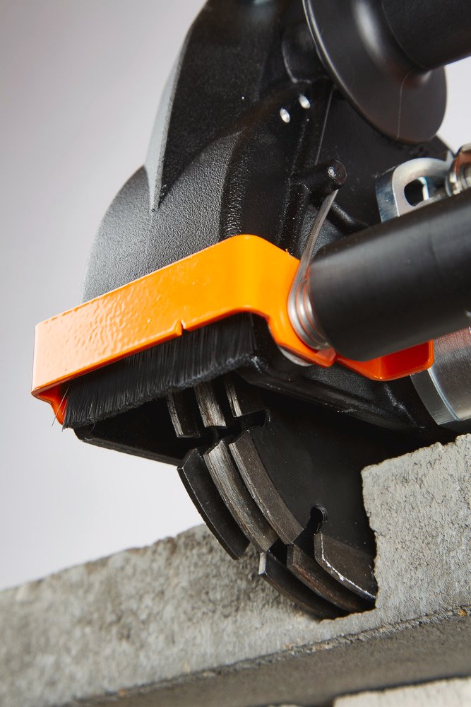 • Perfekt abgestimmt auf ALL IN ONE • Nahezu staubfreies Eintauchen und Schlitzen durch Klapphaube • Kraftvoller 2.300 W Motor durchzugsstark • Elektronik – Sanftanlauf, Temperatur- und Überlastabschaltung, Überlastanzeige • Saugschlaucharretierung verhindert unbeabsichtigtes Lösen des Schlauches während des Fräsens • Frästiefeneinstellung werkzeuglos, komfortabel, von 12 - 45 mm • Spindelarretierung einfacher Werkzeugwechsel • Schlanke Bauweise • geringer Abstand Schutzhaube Diamantscheiben für randnahes Arbeiten bis 18 mm • Geschlossene Haube optimale Strömungsverhältnisse • Schiebender Schnitt bequeme Handhabung • Absaugstutzen Ø 35 mm Direktanschluss eines Industriestaubsaugers der Klasse M Distanzringe für Einzelscheiben-Verwendung und Ausbrechwerkzeug in Ergänzungskit erhältlich