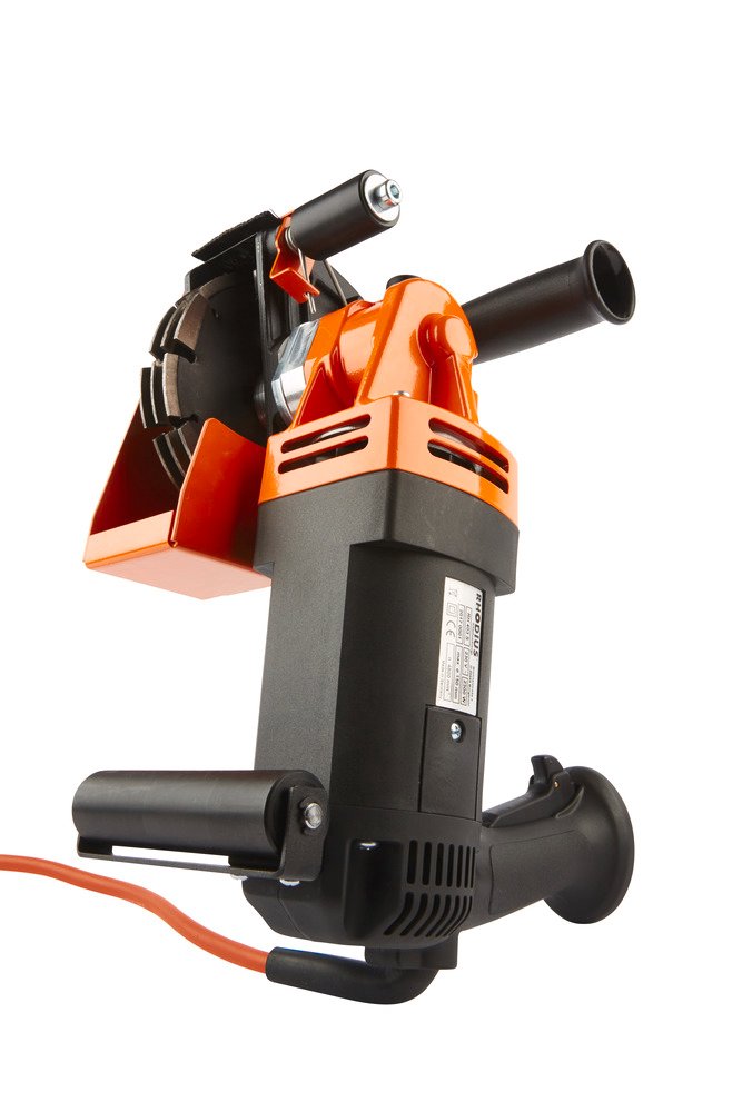 Mit der RH403S lassen sich Nuten und Kanäle z. B. im Mauerwerk einfach und schnell schlitzen. Die Geräteelektronik umfasst einen Sanftanlauf, eine Temperatur- und Überlastabschaltung sowie eine Überlastanzeige. Zusätzlich zeichnet sich die Maschine durch eine schlanke Bauweise aus. Für die Mauerschlitzfräse bietet RHODIUS die beiden Diamanttrennscheiben LD402 mit einer Breite von 18 mm und LD403 mit einer Breite von 28,5 mm mit Durchmessern von 125 mm und 150 mm an. Durch das ALL IN ONE-System mit verschränkt angeordneten Segmenten entstehen passgenaue Mauerschlitze. Der geringe Abstand der Schutzklappe erlaubt das Fräsen mit Diamantscheiben für ein randnahes Arbeiten bis 18 mm. Durch das Verstellen der Schutzhaube, stellen sie mit wenigen Handgriffen und ohne Werkzeug die Schlitztiefe von 12 – 45 mm stufenlos ein. Aufgrund der geteilten Sicherheitsspindel mit passgenauen Distanzringen können Handwerker das Werkzeug mühelos auswechseln, sodass sich die Rüstzeit auf ein Minimum reduziert. Nur mit der geteilten Spindel ist der Einsatz der ALL IN ONE möglich. Zudem ist die Fräse mit einem flexiblen Sicherheitskabel ausgestattet. Der Stutzen mit einem Durchmesser von 35 mm ist für den Direktanschluss eines Industriestaubsaugers der Klasse M vorgesehen. Der ergonomische Handgriff mit Schalter inklusive Einschaltsperre dient ebenso wie der schiebende Schnitt der komfortablen und präzisen Bedienung.