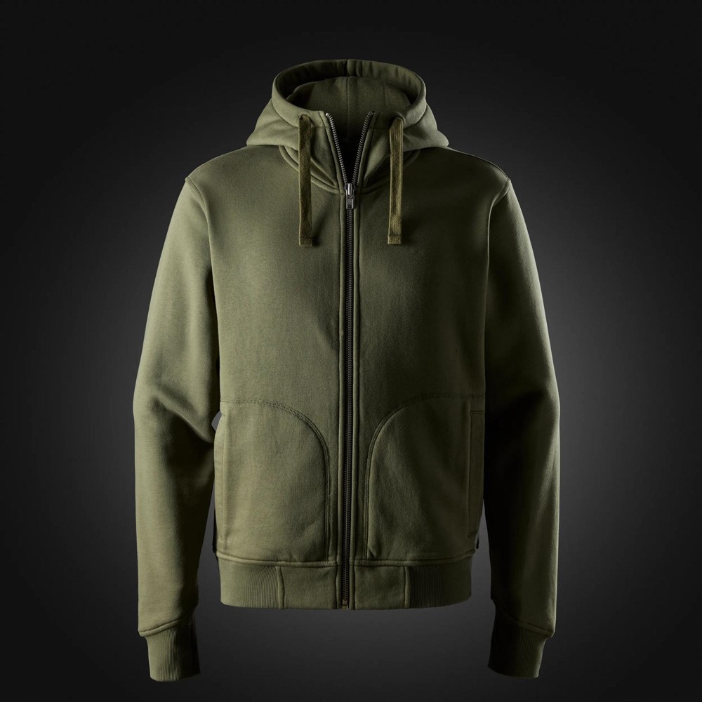 Hochwertige Sweatshirt-Kapuzenjacke aus einer schweren Baumwollmischung mit angerauter Innenseite – für echten Tragekomfort Tag für Tag. Die zweilagige Kapuze, der hohe, dickere Kragen und das klare Design eignen sich ideal für Firmenlogos.- Zwei Seitentaschen