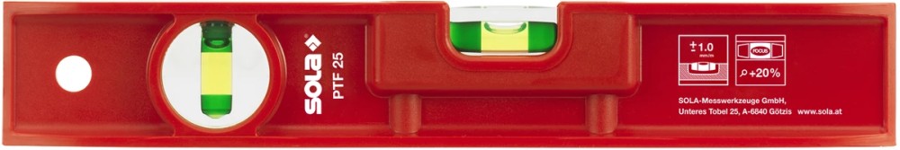 SOLA Kunststoff-Torpedo-Wasserwaage PTF 25 SOLA # 01412201 - EAN 9002719037958 Besser,... mehr