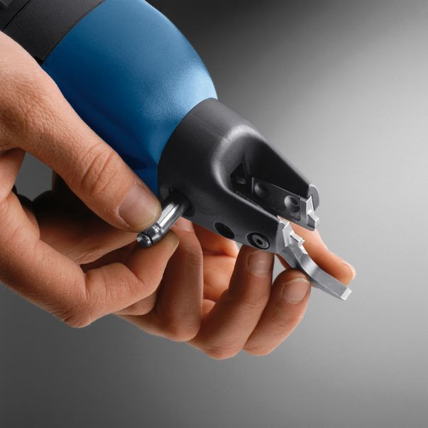 Die 12V-Akkumaschine ohne Spanabtrenner eignet sich besonders für Schneidaufgaben ohne Spanabtrennung während des Schneidvorgangs. So zum Beispiel wenn Sie gerade Bleche ablängen oder bei Kurvenschnitten. Passend zur Anwendungen stellen wir Ihnen unterschiedliche Messer zur Verfügung. Dabei sorgt der 4.0 Ah / 12V-LiHD Akku für eine lange Laufzeit.